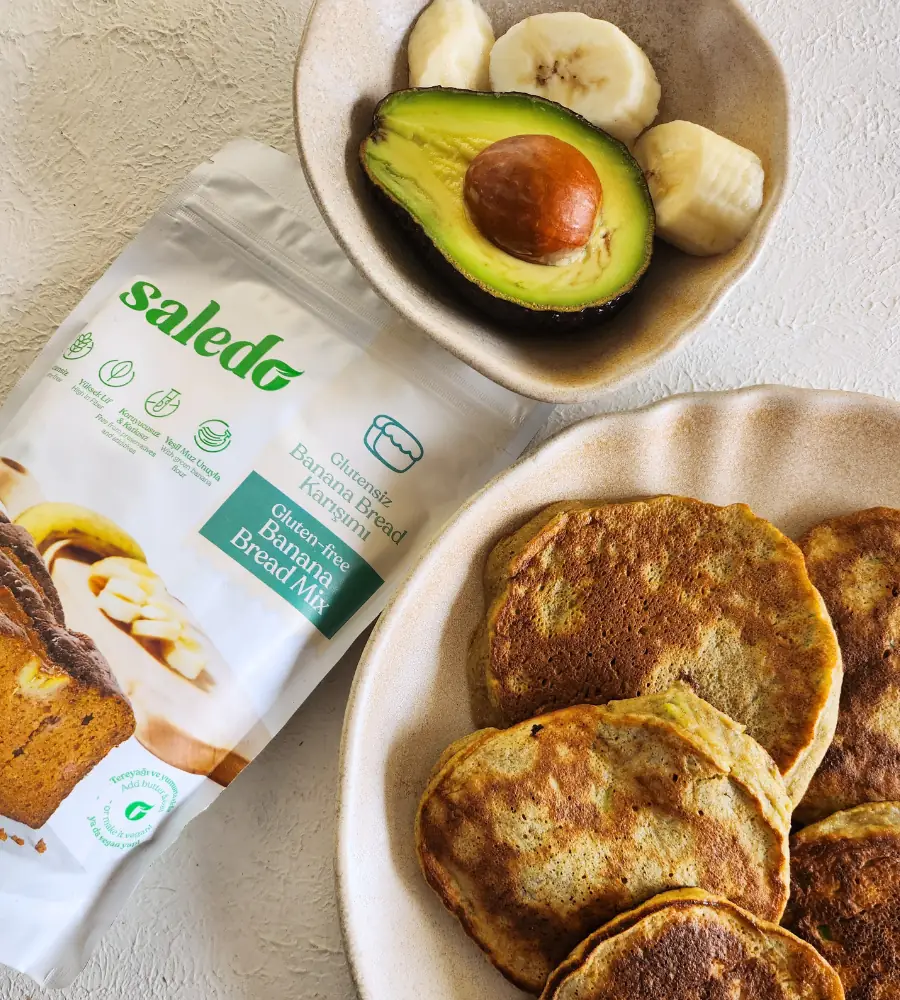 Avokadonun kremsi dokusu ile muzun doğal tatlılığı, Saledo Glutensiz Banana Bread Karışımı ile bir araya geliyor! Kahvaltılarınıza hem besleyici hem de alışılmışın dışında bir lezzet katacak bu yumuşacık pankekler, glutensiz beslenenler için harika bir alternatif sunuyor. Tavada kolayca hazırlayabileceğiniz bu pratik tarifle güne enerjik ve sağlıklı bir başlangıç yapmaya hazır olun!