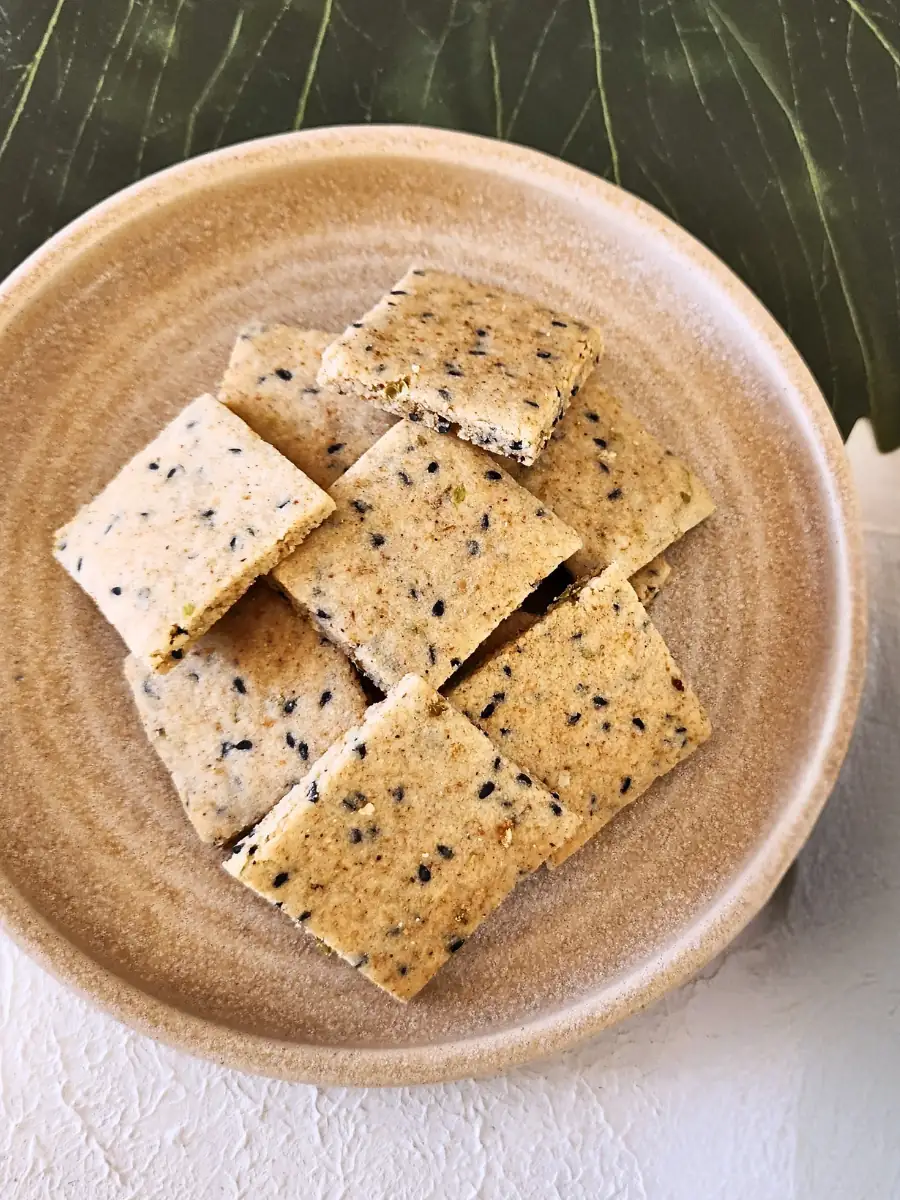 Karışımın üzerine su ve zeytinyağını ekleyip hamuru elinizle toparlayın. 2 yağlı kağıt arasında incecik açtığınız hamuru dilimleyici ya da bir bıçak yardımıyla şekillendirip önceden ısıtılmış 170 derece fırında 8-10 dakika pişirin.