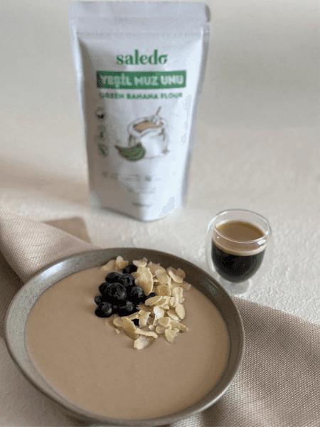 Thanks to Green Banana Flour, its fiber-rich and balanced composition keeps you full for a long time; whether you're starting your day or want to take a little break in the middle of the day, you'll always reach for this bowl. In short, it's a simple recipe that makes you feel good every time.